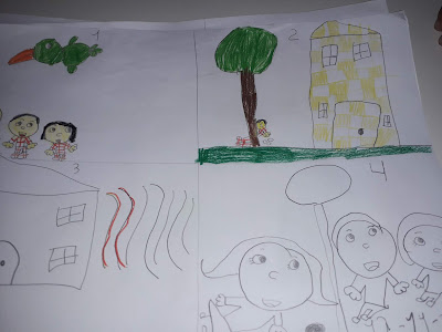 desenho em banda desenhada, matemática com as pedras e brancas (sonhos bons e pesadelos) e a coreografia e musica criada